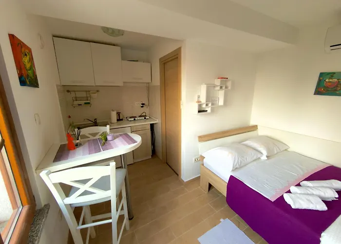 Das 17 m² große Veronica Rooms, Opatija ist lediglich 11 Gehminuten vom Mädchen mit der Möwe entfernt gelegen. Das 1-Zimmer-Apartment bietet eine Terrasse und liegt in nur 200 Meter Entfernung von der Lungomare.